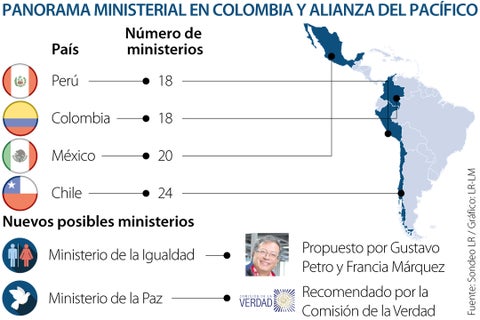 Actualmente, frente a los países de la Alianza del Pacífico, Colombia cuenta con 18 ministerios, igualando a Perú y con dos menos que México (20) y seis menos que Chile (24). En caso tal de que el nuevo gobierno dé luz verde para la creación de ambas carteras, Colombia igualaría a México frente a los países de esa integración regional, lo que representaría una mayor cuota burocrática, según expresó el analista político, Luis Alberto Villamarín.